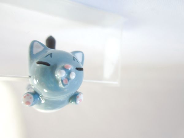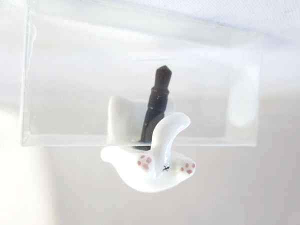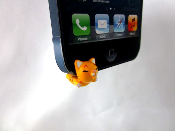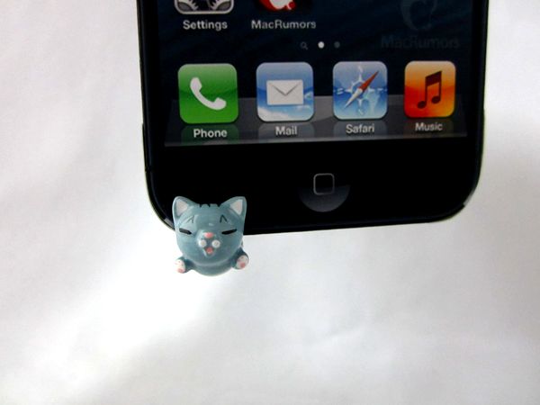 iPhone5用。下向きに付けてもカワイイえびぞり猫のイヤホンジャック。